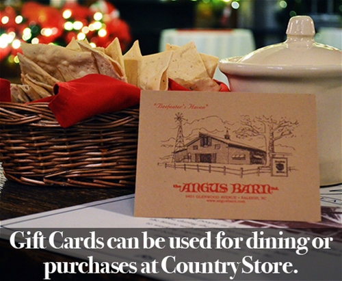 Gift Cards can be used for dining or purchases at Country Store.